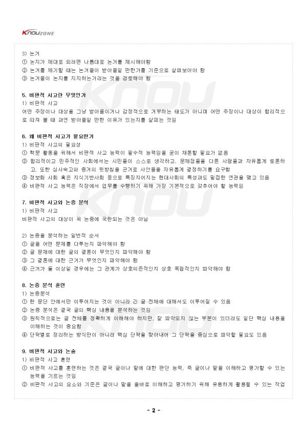 1. ³í¼úÀÇ ±âº» ¼º°Ý 1) ±âº»¼º°Ý ¨ç ³í¼úÀ̶õ ¿ë¾î´Â ¸ðµç ±Û¾¾±â¸¦ ´Ù ¾Æ¿ï·¯ ¸»ÇÏ´Â °ÍÀÌ ¾Æ´Ï°í ƯÁ¤ÇÑ ¹æ½ÄÀÌ ±Û¾²±â, ºñÆÇÀû ±Û¾²±â, ³í¸®Àû ±Û¾²±â¸¦ °¡¸®Å°´Â ¸»ÀÓ ¨è ³í¼úÀº ³í¸®Àû ±Û¾²±â¶ó°í ºÎ¸£°í, ±×Áß¿¡¼µµ ºñÆÇÀû ±Û¾²±â¶ó´Â Ç¥ÇöÀ» ¾²±âµµ ÇÔ ¨é ³íÁõÀû ±Û¾²±â´Â ¼³µæÀ» °Ü³ÉÇÏ´Â ±Û¾²±âÀÓ 2. ³í¼úÀÇ Á¤ÀÇ 1) Á¤ÀÇ ºñÆÇÀû Àбâ¿Í âÀÇÀû ¹®Á¦ ÇØ°áÇϱ⸦ ±â¹ÝÀ¸·Î ÇÑ ³í¸®Àû ±Û¾²±âÀÓ 3. ³íÁõ°ú ³í¼ú 1) ³í¼ú ¨ç ³í¼úÀÇ °¡Àå ±âº»Àû ±ÔÁ¤Àº ³íÁõÀû ±Û¾²±âÀÓ ¨è ³í¼ú¿¡¼ °¡Àå Áß¿äÇÑ ±â¹ýÀº ³íÁõ±â¹ýÀÓ 2) ³íÁõ ¨ç ¼·Î°£ÀÇ ÀÏÁ¤ÇÑ °ü°è¿¡ ³õ¿© ÀÖ´Â ÀÏ·ÃÀÇ ¸íÁ¦µéÀÇ ¹À½ ¨è ³íÁõÀ̶õ ¸íÁ¦µéÀÇ ÁýÇÕÀÓ ¨é ¿¬¿ª³íÁõÀº ÀüÁ¦µé ¼Ó¿¡ ¹¬½ÃÀûÀ¸·Î µé¾î°¡ ÀÖ´Â ³»¿ëÀ» °á·Ð¿¡¼ ¸í½ÃÀûÀ¸·Î ¹àÇôÁشٴ Á¡¿¡¼ È¿¿ë¼ºÀÌ ÀÖÀ½ ¨ê ±Í³³³íÁõÀº ÀüÁ¦µé ¼Ó¿¡ Æ÷ÇÔµÇÁö ¾ÊÀº »õ·Î¿î Áö½ÄÀ» °á·ÐÀ¸·Î È®º¸ÇÏ¿© Áö½ÄÀ» È®Àå½ÃÄÑÁشٴ Á¡¿¡¼ È¿¿ë¼ºÀÌ ÀÖÀ½ - Áß·« - |