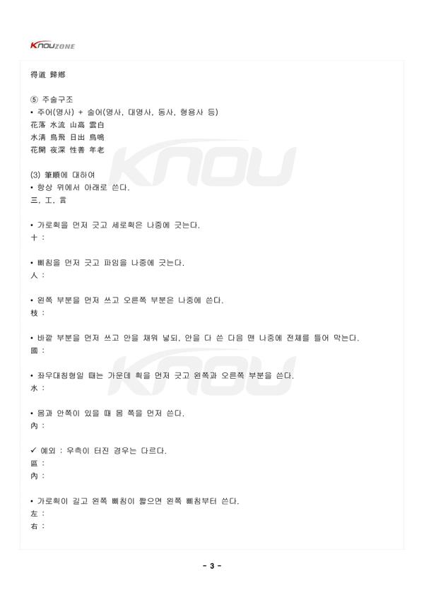 1. ùÓí®ÀÇ ±¸¼º¿ø¸® 1) ùÓí®ÀÇ ±¸¼º¿ø¸® (1) ÇÑÀÚÀÇ »ï¿ä¼Ò : û¡, ëå, ëù û¡ : ¹®ÀÚÀÇ ¸ð¾ç. ëå : Ç¥ÇöÇÏ´Â ¼Ò¸®. ëù : ´ã°í ÀÖ´Â ÀǹÌ. (2) µ¶Ã¼ÀÚÀÇ ±¸¼º ¿ø¸® »óÇüÀÚ(ßÚû¡í®) : ìí¡²ÇØ¡³ ¡¤ êÅ¡²´Þ¡³ ¡¤ ߣ¡²»ê¡³ Áö»çÀÚ(ò¦ÞÀí®) : ì顲Çϳª¡³ ¡¤ 죡²µÑ¡³ ¡¤ ß²¡²¼Â¡³ (3) ÇÕüÀÚÀÇ ±¸¼º¿ø¸® ȸÀÇÀÚ(üåëòí®) : ÀÇ¹Ì¿Í ÀÇ¹Ì ºÎºÐ¡²û¡Ý¬¡³À» ÇÕÇÏ¿© ¸¸µç ±ÛÀÚ. ¼·Î ´Ù¸¥ ¸ð¾çÀÇ ÇüºÎ(û¡Ý¬)ÀÇ °áÇÕ : ýÌ ¡¤ Ù¥ ¡¤ äÌ ¡¤ ôÓ °°Àº ¸ð¾çÀÇ ÇüºÎÀÇ °áÇÕ : ×ù ¡¤ ßµ ¡¤ æú ¡¤ ÝÁ (4) ÇÕüÀÚÀÇ ±¸¼º¿ø¸® Çü¼ºÀÚ(û¡á¢í®) : ÀÇ¹Ì¿Í ¼Ò¸® ºÎºÐ¡²á¢Ý¬¡³À» ÇÕÇÏ¿© ¸¸µç ±ÛÀÚ • ¿ÞÂÊÀÌ ÇüºÎ, ¿À¸¥ÂÊÀÌ ¼ººÎÀÎ °æ¿ì(ñ§û¡éÓá¢) : Î顤 Úù¡¤ øÙ¡¤ øÔ • ¿À¸¥ÂÊÀÌ ÇüºÎ, ¿ÞÂÊÀÌ ¼ººÎÀÎ °æ¿ì(éÓû¡ñ§á¢) : Ñ¢¡¤ Ó³¡¤ Þû¡¤ øý • À§ÂÊÀÌ ÇüºÎ, ¾Æ·¡ÂÊÀÌ ¼ººÎÀÎ °æ¿ì(ß¾û¡ù»á¢) : ÖÚ¡¤ â졤 ÷Õ¡¤ ü£ • ¾Æ·¡ÂÊÀÌ ÇüºÎ, À§ÂÊÀÌ ¼ººÎÀÎ °æ¿ì(ù»û¡ß¾á¢) : Øî¡¤ ßÌ¡¤ í´¡¤ ùì • ¹Ù±ùÂÊÀÌ ÇüºÎ, ¾ÈÂÊÀÌ ¼ººÎÀÎ °æ¿ì(èâû¡Ò®á¢) : Ü»¡¤ ݤ¡¤ ꡤ êÌ • ¾ÈÂÊÀÌ ÇüºÎ, ¹Ù±ùÂÊÀÌ ¼ººÎÀÎ °æ¿ì(Ò®û¡èâá¢) : Ùý¡¤ Ú¤¡¤ Ú¿¡¤ Ü© 2) ùÓí®ÀÇ Æ¯¼º (1) ´ÜÀ½Àý¾î • ´ÙÀǼº(Òýëùàõ) : ÇϳªÀÇ ÇÑÀÚ°¡ ¿©·¯ °³ÀÇ ´Ù¸¥ ¶æÀ» Áö´Ô ¿¹) ܲ: º´»ç, ¹«±â, ±º´ë, ÀüÀï, º£´Ù, ÇØÄ¡´Ù • ½ÅÃ༺(ãßõêàõ) : ¿©·¯ °³ÀÇ Àǹ̸¦ ³»Æ÷ÇÏ¿© ¾ÆÁÖ Æ÷°ýÀûÀÌ´Ù. ¿¹) ø¶ : Ä¡¿ìÄ¡´Ù(±â¿ï´Ù) ¡æ Æí¾ÖÇÏ´Ù ¡æ ½Ã°ñ • ´Ü¾îÁ¶¼ºÀÇ ±â´É : ´ÜÀ½ÀýÀº ´Ü¾î¸¦ Á¶¼ºÇÒ ¼ö ÀÖ´Ù. ¿¹) ܲ : ܲÐï, ܲÛö, ôÓܲ, íâܲ, ÷ïܲ - Áß·« - |