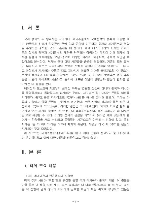 ¸ÕÁ¦ ¼¼°èÀÇÁ¤Ä¡¿Í°æÁ¦ ±³À縦 Àаí (ÃÖ¼Ò 1Àå-3Àå), ÀÌ¿¡ ±Ù°ÅÇØ ´ÙÀ½ Âü°íµµ¼ Áß ÇÑ ±ÇÀ» Àаí ÀÌ¿¡ ´ëÇÑ ¼ÆòÀ» ºñÆÇÀûÀ¸·Î ÀÛ¼ºÇϽÿÀ.