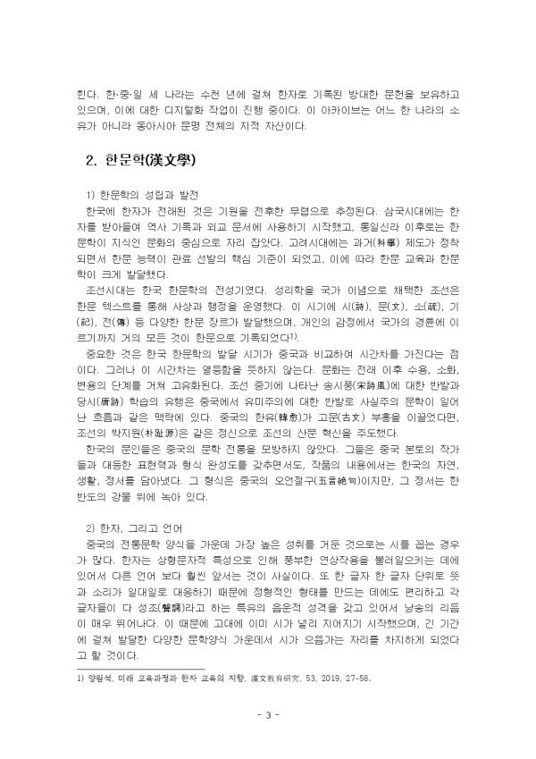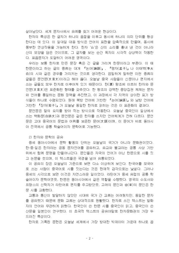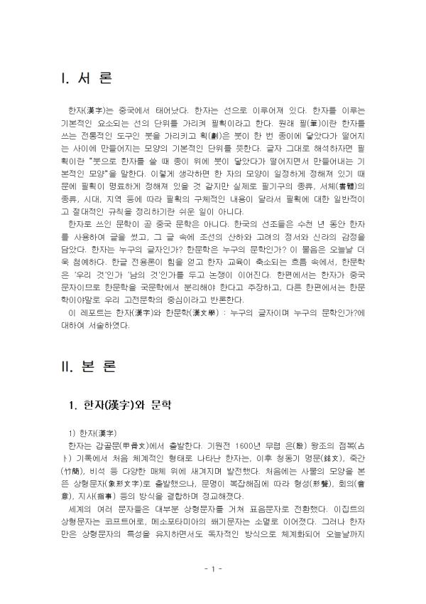 ¡°ÇÑÀÚ´Â Áß±¹ÀÇ ¹®ÀÚÀ̹ǷΠÁß±¹ÀÇ °íÀ¯ ÀÚ»êÀÌ´Ù¡±¶ó´Â Áß±¹ ÃøÀÇ Àνİú, ¡°Çѹ®ÇÐÀº ¿ì¸® Á¶»óÀÇ Á¤¼¸¦ ´ãÀº ¿ì¸® ¹®ÇÐÀÇ Á¤¼öÀÌ´Ù¡±¶ó´Â Çѱ¹ ÃøÀÇ ÀںνÉÀÌ °øÁ¸ÇÕ´Ï´Ù. ÇÑÀÚ¶ó´Â ±â·Ï ¼ö´ÜÀÇ ±â¿ø(Áß±¹Àû ¸Æ¶ô)°ú ±×°ÍÀ» ÁÖüÀûÀ¸·Î ¼ö¿ëÇÏ¿© µ¶ÀÚÀûÀÎ ¹®ÇÐ ¼¼°è¸¦ ±¸ÃàÇÑ ÇѹݵµÀÇ ¡®ÇâÀ¯¡¯ °úÁ¤(Çѱ¹Àû ¸Æ¶ô)À» °íÂûÇØ º¸¼¼¿ä. À̸¦ ¹ÙÅÁÀ¸·Î ¾î¶² ¹®È ¿ä¼Ò¸¦ ±¹°¡Àû ÀüÀ¯¹°·Î¸¸ ¹Ù¶óº¸´Â ¹èŸÀû °üÁ¡ÀÌ Áö´Ñ ÇѰ踦 ÁöÀûÇϰí, ¹®È¸¦ ¹Ù¶óº¸´Â ¹Ù¶÷Á÷ÇÑ °üÁ¡¿¡ ´ëÇÑ ÀÚ½ÅÀÇ °ßÇØ¸¦ ¼¼úÇϼ¼¿ä. - ¸ñ Â÷ - I. ¼ ·Ð II. º» ·Ð 1. ÇÑÀÚ(ùÓí®)¿Í ¹®ÇÐ 2. Çѹ®ÇÐ(ùÓÙþùÊ) 3. Çѹ®ÇÐ(ùÓÙþùÊ)Àº Çѱ¹ÀÇ ¹®ÇÐ III. °á ·Ð Âü°í¹®Çå ** ÇÔ²² Á¦°øµÇ´Â Âü°íÀÚ·á ÇÑ±ÛÆÄÀÏ ** 1. ÇÑÀÚ(ùÓí®)¿Í Çѹ®ÇÐ(ùÓÙþùÊ) ´©±¸ÀÇ ±ÛÀÚÀÌ¸ç ´©±¸ÀÇ ¹®ÇÐÀΰ¡.hwp 2. ÇÑÀÚ(ùÓí®)¿Í Çѹ®ÇÐ(ùÓÙþùÊ) ´©±¸ÀÇ ±ÛÀÚÀÌ¸ç ´©±¸ÀÇ ¹®ÇÐÀΰ¡2.hwp 3. ¼·Ð ÀÛ¼º½Ã ÂüÁ¶.hwp 4. °á·Ð ÀÛ¼º½Ã ÂüÁ¶.hwp 5. ¼·Ð ÀÛ¼º½Ã ÂüÁ¶2.hwp 6. °á·Ð ÀÛ¼º½Ã ÂüÁ¶2.hwp ¢ºÀÚ·á³»¿ë ¹Ì¸®º¸±â