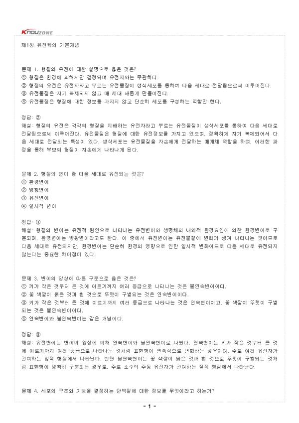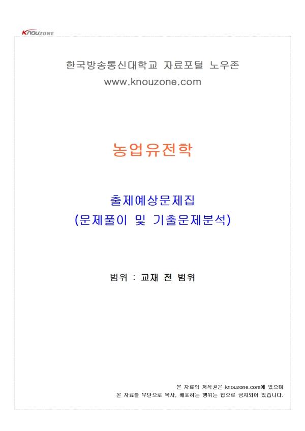 | 2026³â 1Çб⠳ó¾÷À¯ÀüÇÐ ±³Àç Àü ¹üÀ§ ÃâÁ¦¿¹»ó¹®Á¦Áý |